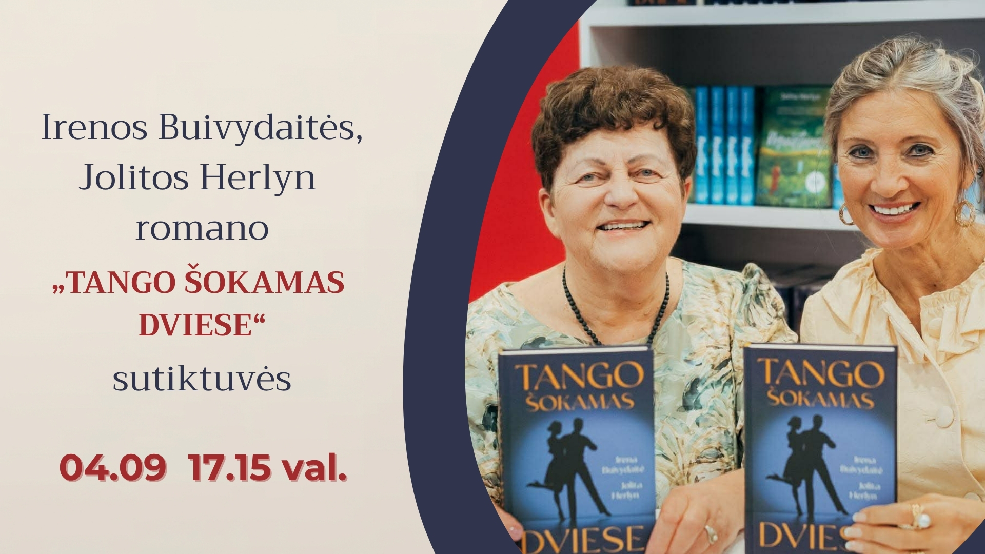 Skaitomiausių bibliotekų autorių tandemas sugrįžta! Balandžio 9 d. 17.15 val. Alytaus Jurgio Kunčino viešojoje bibliotekoje (Seirijų g. 2) vyks Irenos Buivydaitės ir Jolitos Herlyn antrojo bendro kūrinio – romano „Tango šokamas dviese“ pristatymas.