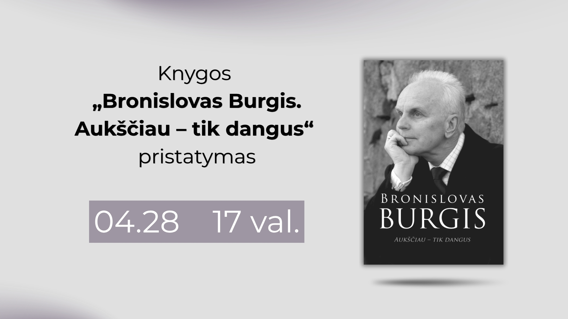 Balandžio 28 d. 17 val. Alytaus Jurgio Kunčino viešojoje bibliotekoje (Seirijų g. 2) vyks knygos „Bronislovas Burgis. Aukščiau tiks dangus“ pristatymo renginys. Leidinį alytiškiams pristatys žymaus Lietuvos pedagogo a. a. B. Burgio žmona Albina Burgienė.