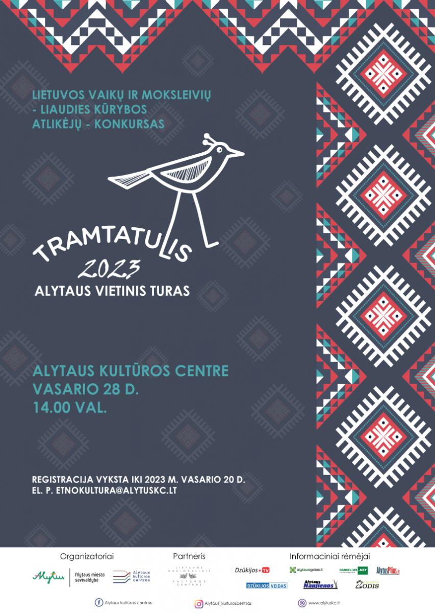 Alytaus kultūros centras, bendradarbiaudamas su Lietuvos nacionaliniu kultūros centru, kviečia Alytaus miesto ir rajono ikimokyklinio amžiaus vaikus (3–7 m.) ir moksleivius (1–12 klasių) aktyviai dalyvauti konkurso „Tramtatulis“ vietiniame Alytaus ture, vyksiančiame š. m. vasario 28 dieną, 14 valandą Alytaus kultūros centre. Vertinimo komisijos atrinkti laureatai kovo 18 dieną dalyvaus regioniniame rate Lazdijuose.