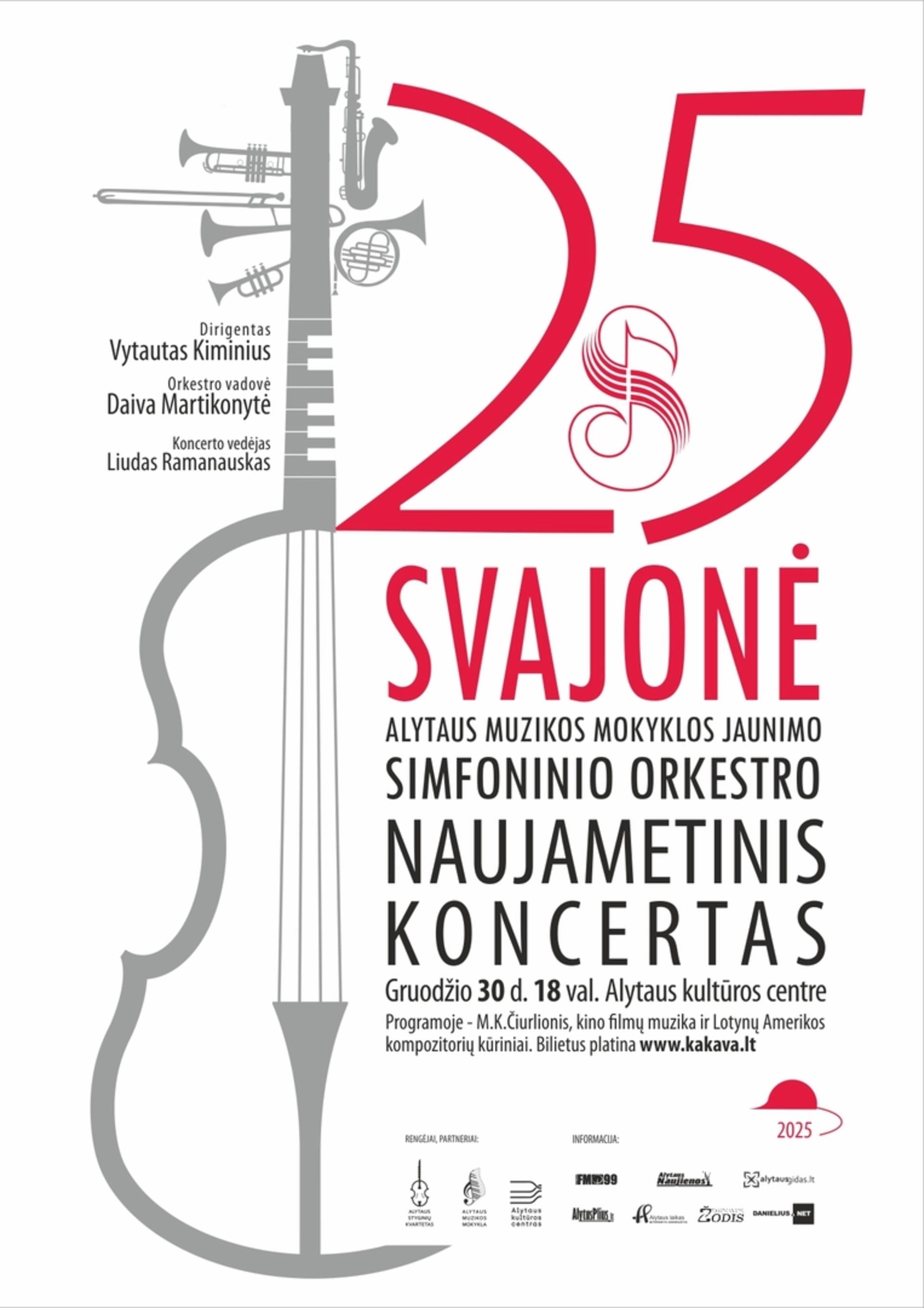 Naujametiniu koncertu Alytaus muzikos mokyklos simfoninio orkestras „Svajonė“ palydės 25- uosius savo veiklos metus. Programoje – kūriniai, skambėję pirmuosiuose orkestro koncertuose, vinilinėje plokštelėje „Muzika kaip kinas“ įrašyta kino filmų muzika ir naujausias „Svajonės“ repertuaras - Lotynų Amerikos kompozitorių kūriniai.