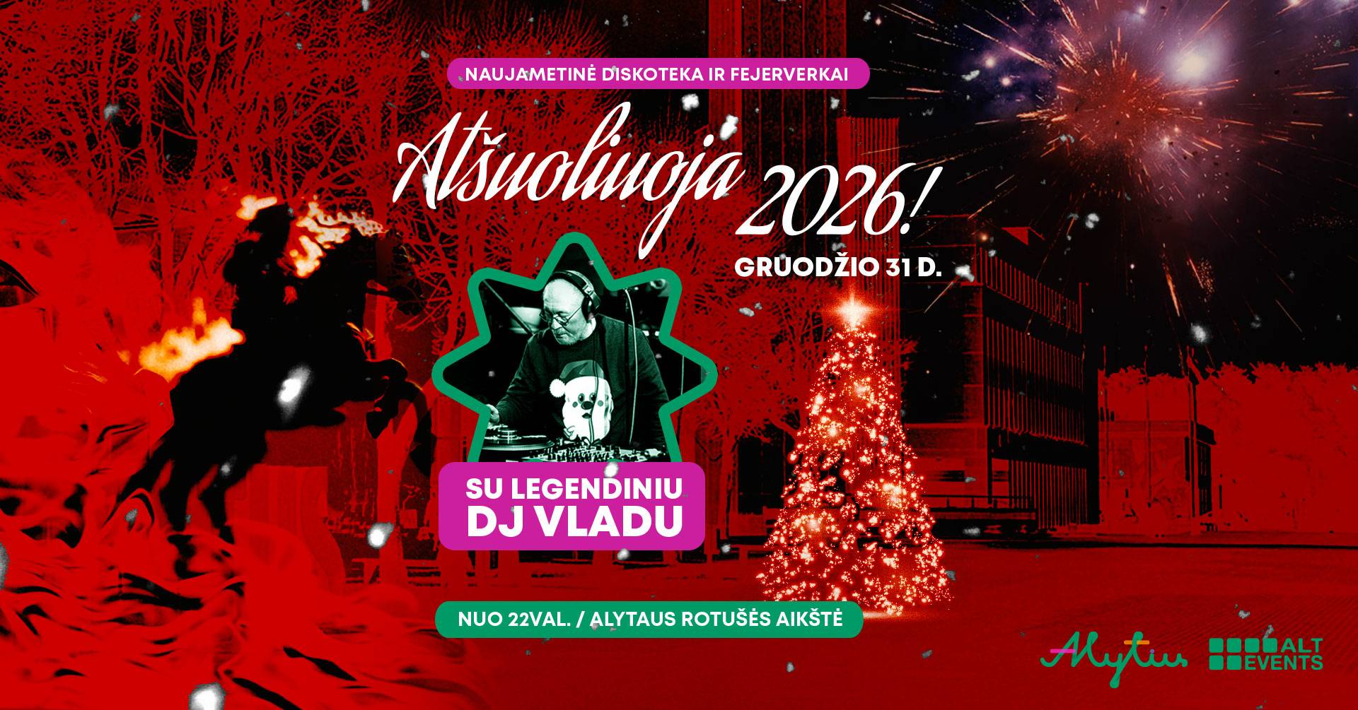 Naujųjų naktį pasitinkame taip, kaip jie ir ateina – su ritmu, greičiu ir legendiniu DJ Vladu, kuris miksuoja visiems gerai žinomus 80’s–90’s–00’s šlagerius su šiuolaikine muzika.