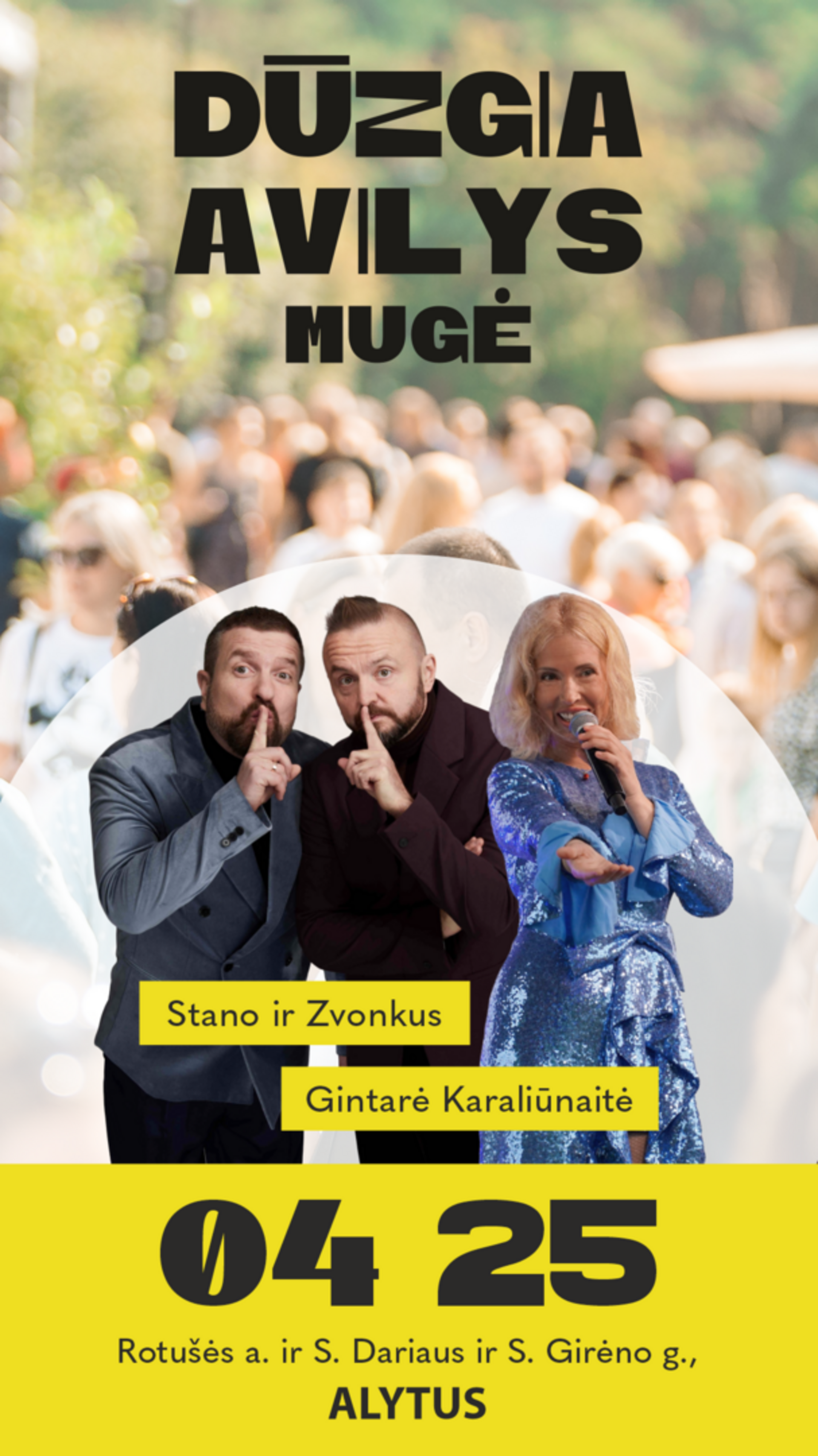 12:00 val. scenoje pasirodys Stano ir Zvonkaus duetas. Klausytojai išgirs garsiausius lietuviškus hitus, atliekamus kultinių prodiuserių – puikiai pažįstamos dainos įgaus naujų spalvų ir neabejotinai praskaidrins šventės nuotaiką.