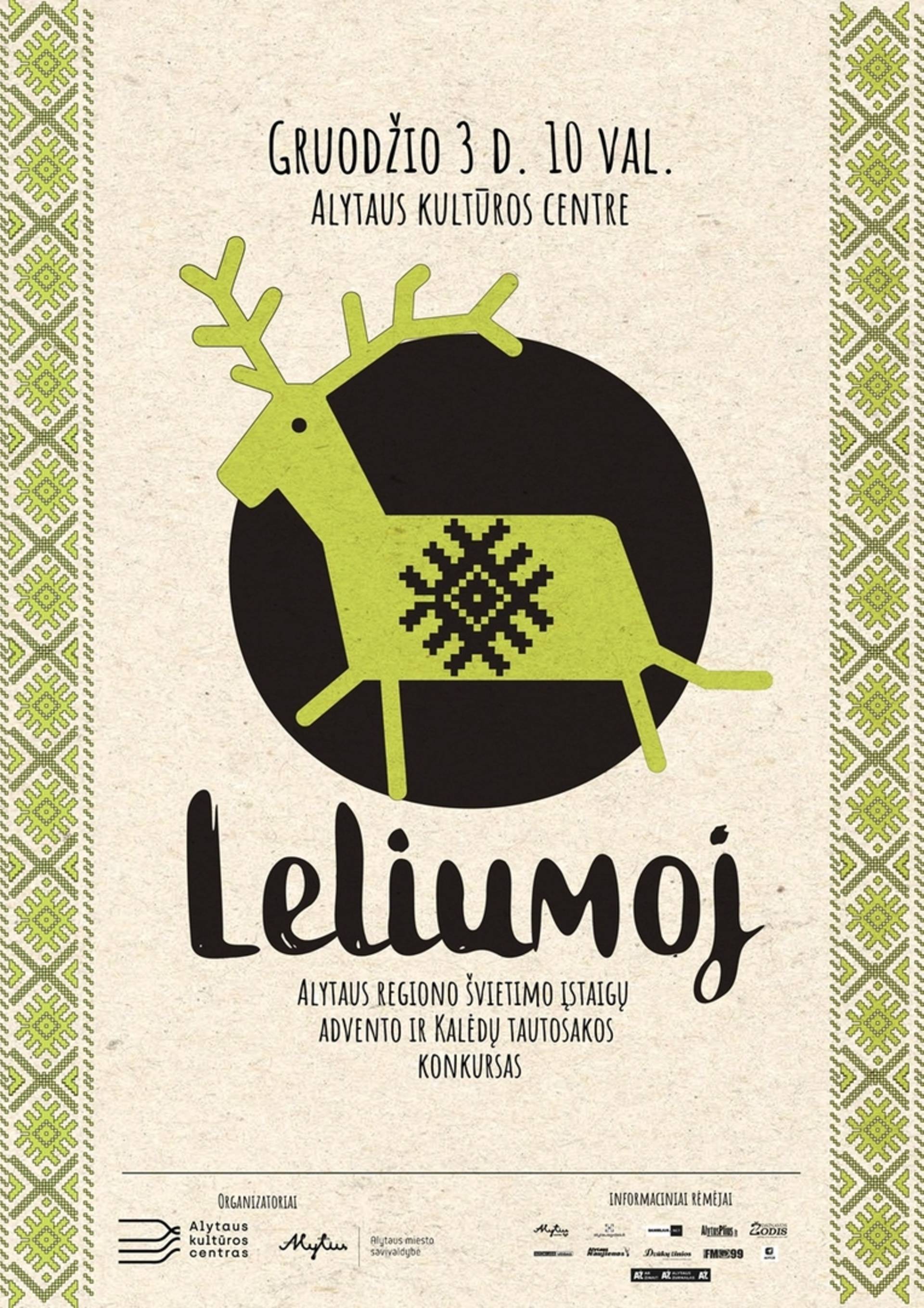 Kaip ir kiekvienais metais Alytaus kultūros centre vyks advento – Kalėdų tautosakos konkursas „Leliumoj“. Gruodžio 3 d. 10 val. kviečiame ne tik palaikyti jaunuosius konkurso dalyvius, bet drauge pasinerti į kalėdinių dainų sąskambius, pasakojimus, drauge pajusti artėjančią Kalėdų dvasią. Renginys nemokamas. Laukiame visų, besidominčių tradicine kultūra ir norinčių advento laikotarpiu prisiminti autentiškas pasakas, giesmes ir dainas.