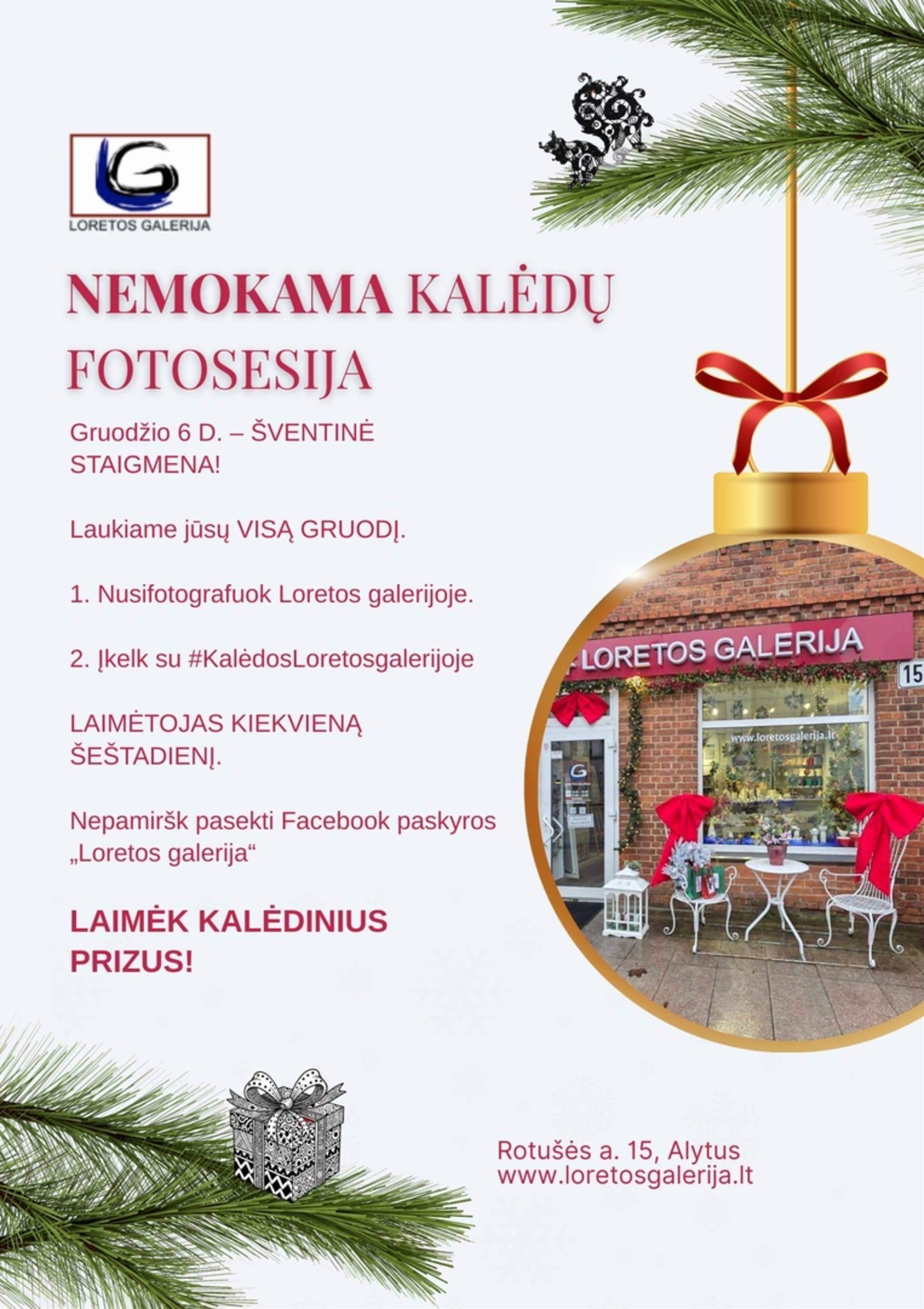Gruodžio 6 d., kartu su Alytaus miesto eglutės įžiebimu, kviečiame užsukti ir į Loretos galeriją (Rotušės a. 15). Jūsų laukia ypatinga šventinė staigmena ir daug kalėdinio džiaugsmo!
