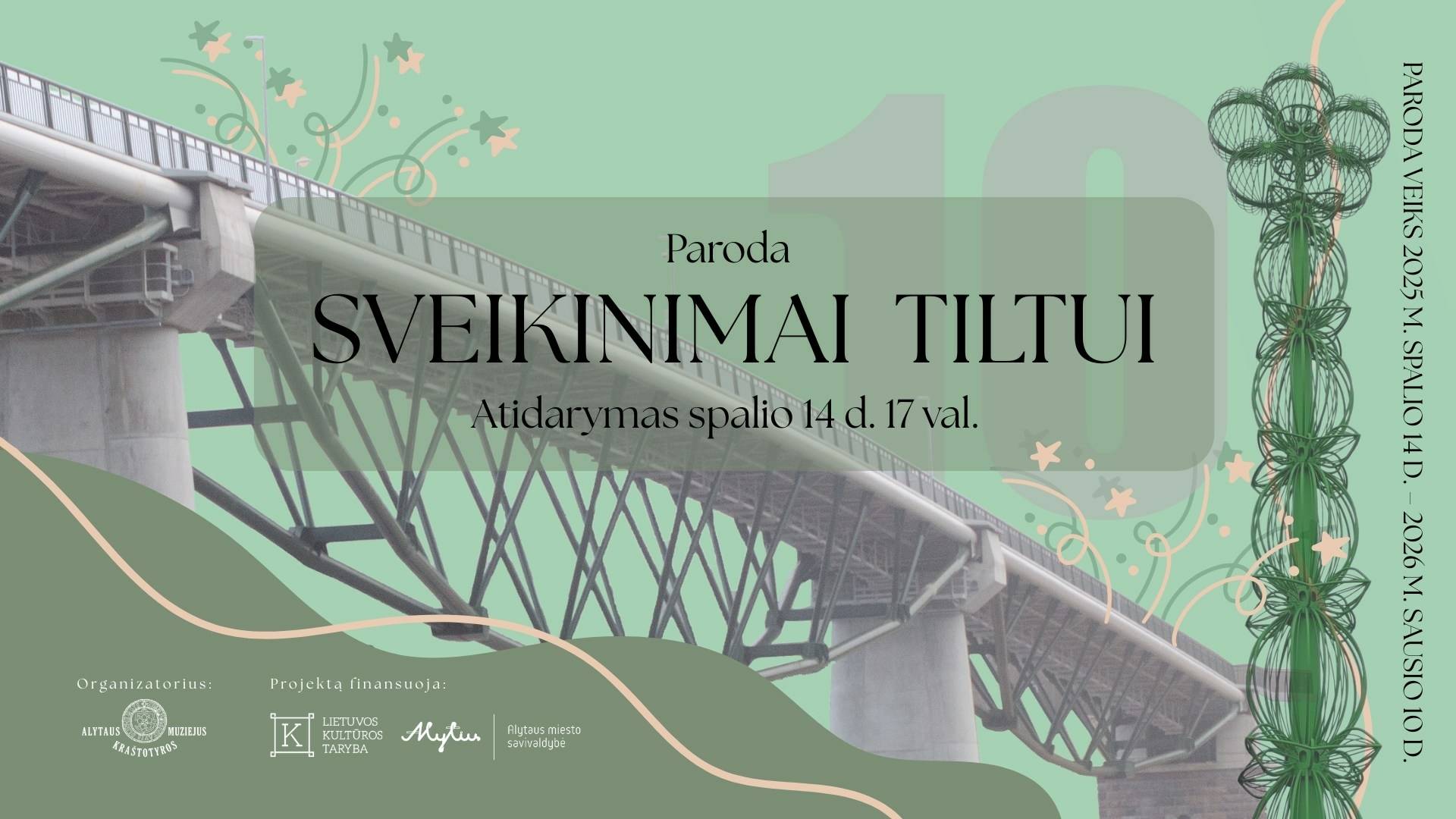 Neseniai muziejaus kiemelyje pristatę lauko parodą „Dainų slėnio tiltai“ žadėjome Jums ir 10-metį švenčiančiam Baltosios rožės tiltui dar vieną staigmeną. Tad šįkart kviečiame į muziejų, kur 𝐬𝐩𝐚𝐥𝐢𝐨 𝟏𝟒 𝐝. 𝟏𝟕 𝐯𝐚𝐥. pristatysime parodą „𝐒𝐕𝐄𝐈𝐊𝐈𝐍𝐈𝐌𝐀𝐈 𝐓𝐈𝐋𝐓𝐔𝐈“!Iki XXI a. pradžios Dainų slėnyje tiltų istoriją priminė tik išlikusios akmeninės atramos, ikonografija ir skirtingų kartų alytiškių istorijos, liudijančios jų ryšį su ypatinga šios vietos dvasia.