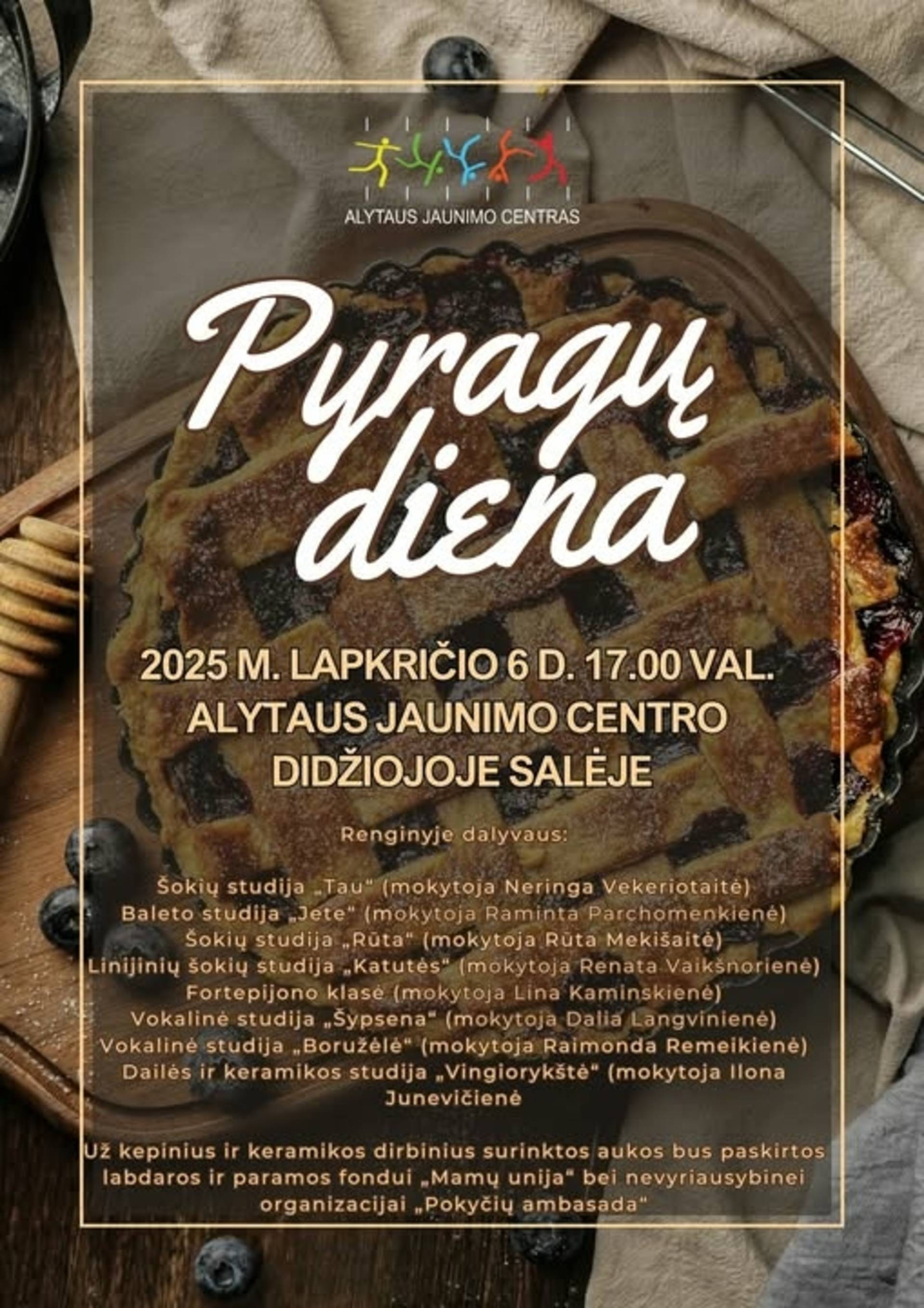 Lapkričio 6 d. 17.00 val. Alytaus jaunimo centro didžiojoje salėje vyks Pyragų diena.