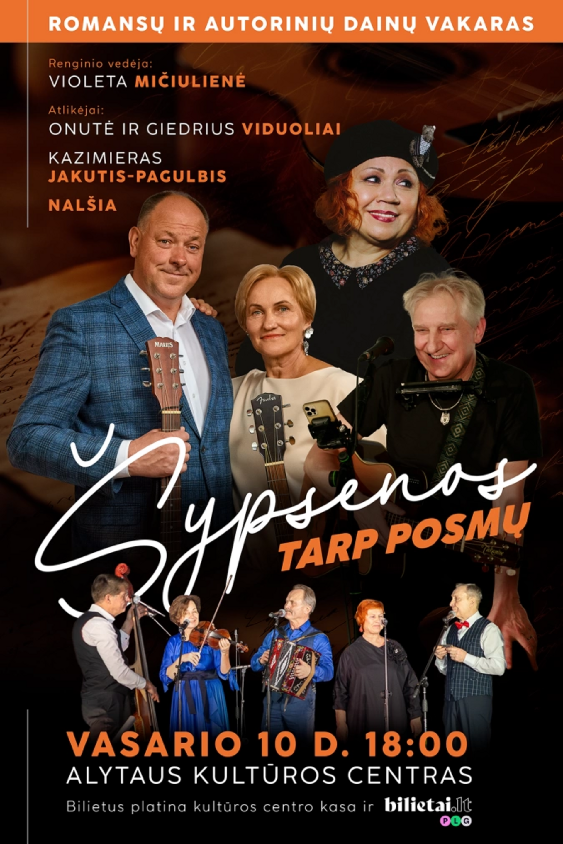 Scenoje – charizmatiškoji aktorė Violeta Mičiulienė, kurios nuoširdumas, humoras ir gyvenimiška išmintis vakarą pripildys nuostabių akimirkų. Muzikinę nuotaiką kurs Kazimieras Jakutis – Pagulbis ir jo dainos lyg melodingas gyvenimo dienoraštis, švelnus prisilietimas prie to, kas brangiausia: draugystės, meilės, tėviškės. Jūsų pamiltas šeimos duetas Onutė ir Giedrius Viduoliai ir jų muzika – paprasta ir tikra, kaip pats gyvenimas, o žodžiai – lyg laiškai iš širdies į širdį bei sielą virpinanti „Nalšia“, atliekanti romansus - tarsi močiutės drobės, nuaustus iš ilgesio, švelnumo ir prisiminimų.