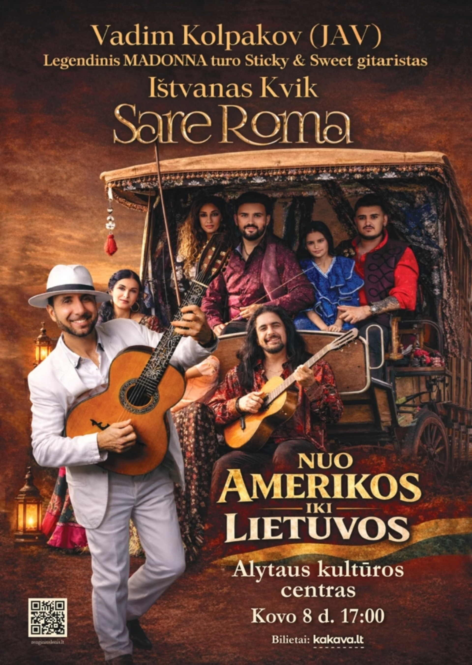 Į Lietuvą atvyksta pasaulinio garso unikalios romų 7 stygų gitaros virtuozas, vokalistas ir šokėjas, legendinės Madonnos pasaulinio turo dalyvis, garsiojo teatro „Romen“ artistas, daugelio savo muzikinių projektų Amerikoje kūrėjas romų kilmės atlikėjas Vadimas Kolpakovas. Jis su „Sare Roma“ ir Ištvanu Kvik Lietuvoje surengs išskirtinį akustinių koncertų mini turą ir pradžiugins klausytojus Vilniuje, Nemenčinėje, Visagine ir kovo 8-ąją - Alytuje. Specialiai šiems akustiniams koncertams sukurta išskirtinė geriausių romų romansų programa, kuri užburs romų ritmais ir energetika.