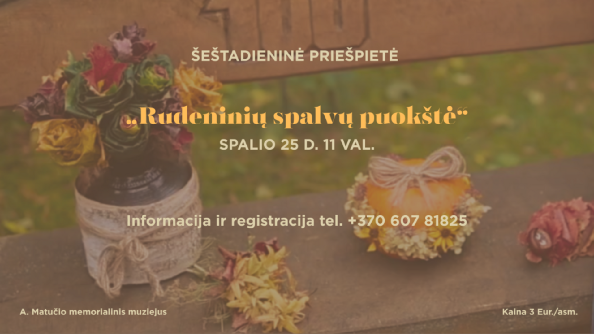 Kviečiame į  priešpietę „Rudeninių spalvų puokštė“, kuri vyks spalio 25 d. 11 val. A. Matučio memorialiniame muziejuje.