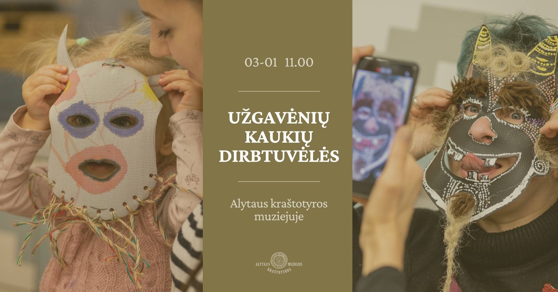 Kovo 1 d., 11 val., Alytaus kraštotyros muziejuje vyks Užgavėnių kaukių dirbtuvėlės. Pasitelkę fantaziją ir kūrybiškumą pasigaminsime kaukes, kurių išsigandusi žiema iki kitų metų net nesugalvos atsigręžti.