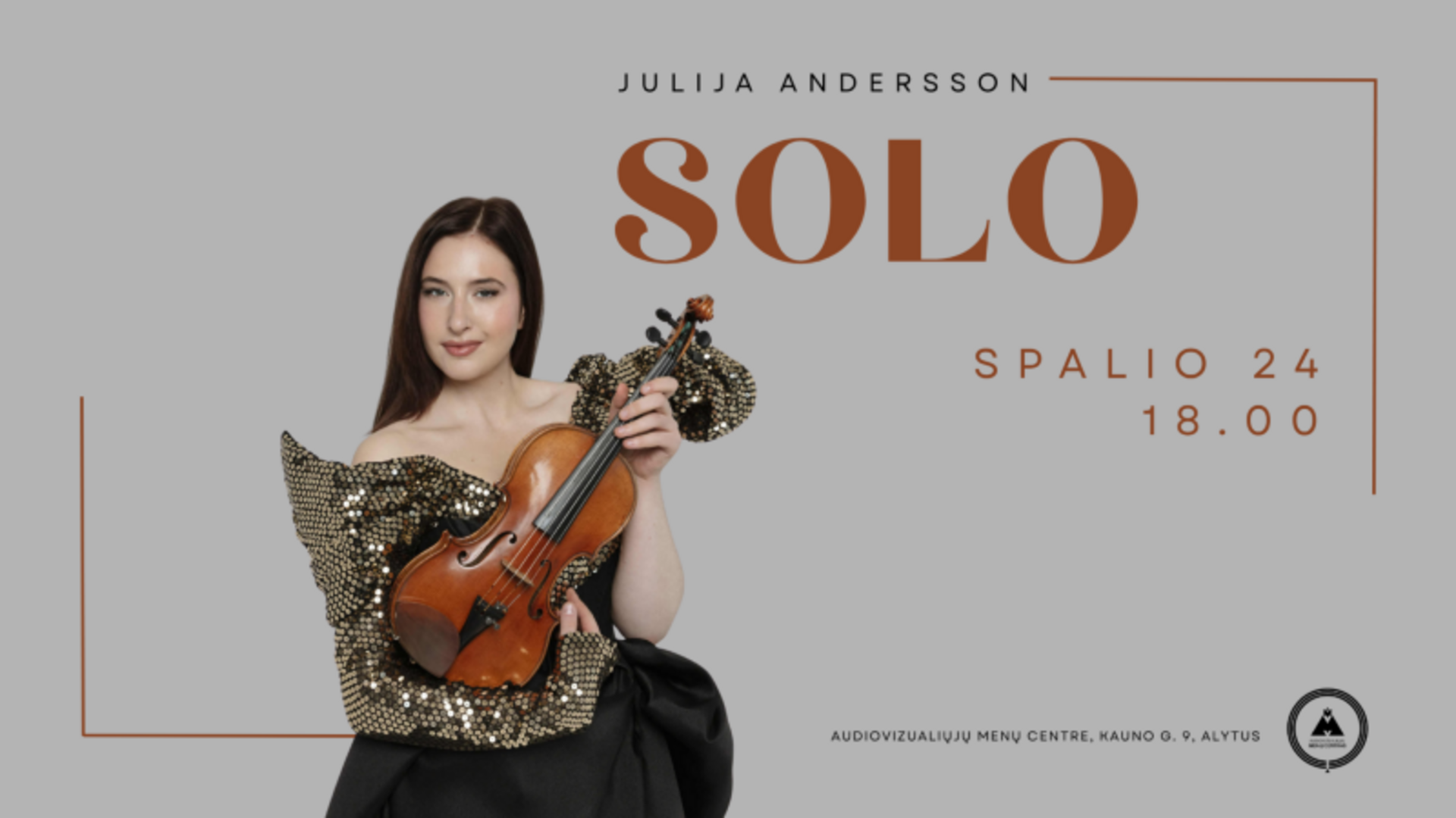 Smuikininkė Julija Andersson pristato programą „Solo”, kurioje skambės tiek žinomi kompozitorių J. S. Bach, N. Paganini, F. Kreisler kūriniai smuikui, tiek ir šiuolaikiniai, Lietuvoje dar negirdėti opusai.