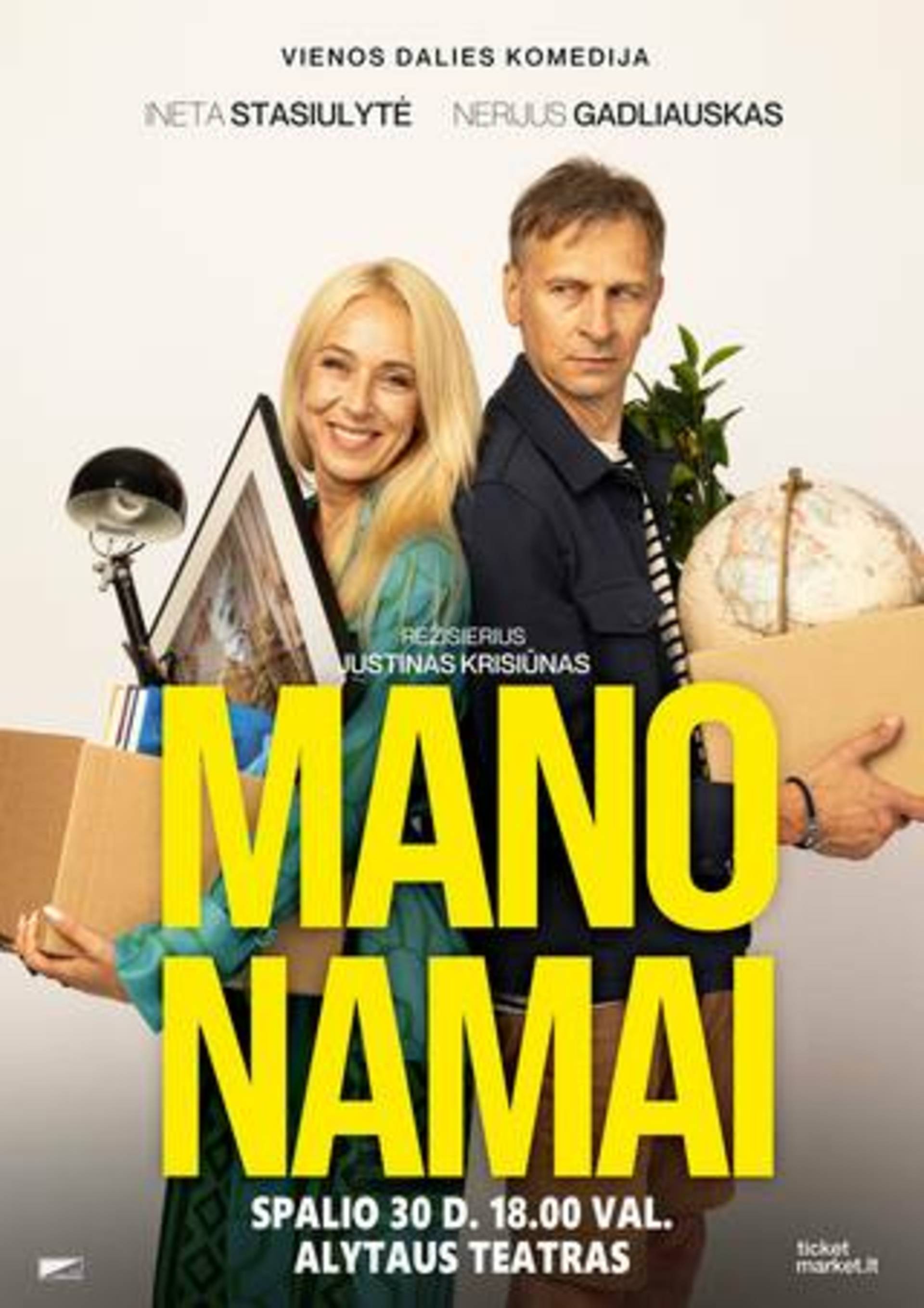 Kino filmų „Vyras už pinigus“, „Draugų lažybos“, „Vyrų svajonės“ ir spektaklio „DIDELI PINIGAI“ prodiuseriai pristato naują teatro komediją „MANO NAMAI“! Ar kada nors pagalvojote, kas nutiktų, jei per klaidą jūs ir visiškai nepažįstamas žmogus išsinuomotumėte tą patį butą? Vieną dieną į savo naujus namus įsikrausčiusi Rūta (Ineta Stasiulytė) susiduria su nepaaiškinama situacija – besitvarkant naujuose namuose, ji išgirsta kaip kažkas atsirakina duris. Pasirodo, tai Tomas (Nerijus Gadliauskas), kuris įsitikinęs, kad šie namai priklauso jam.
