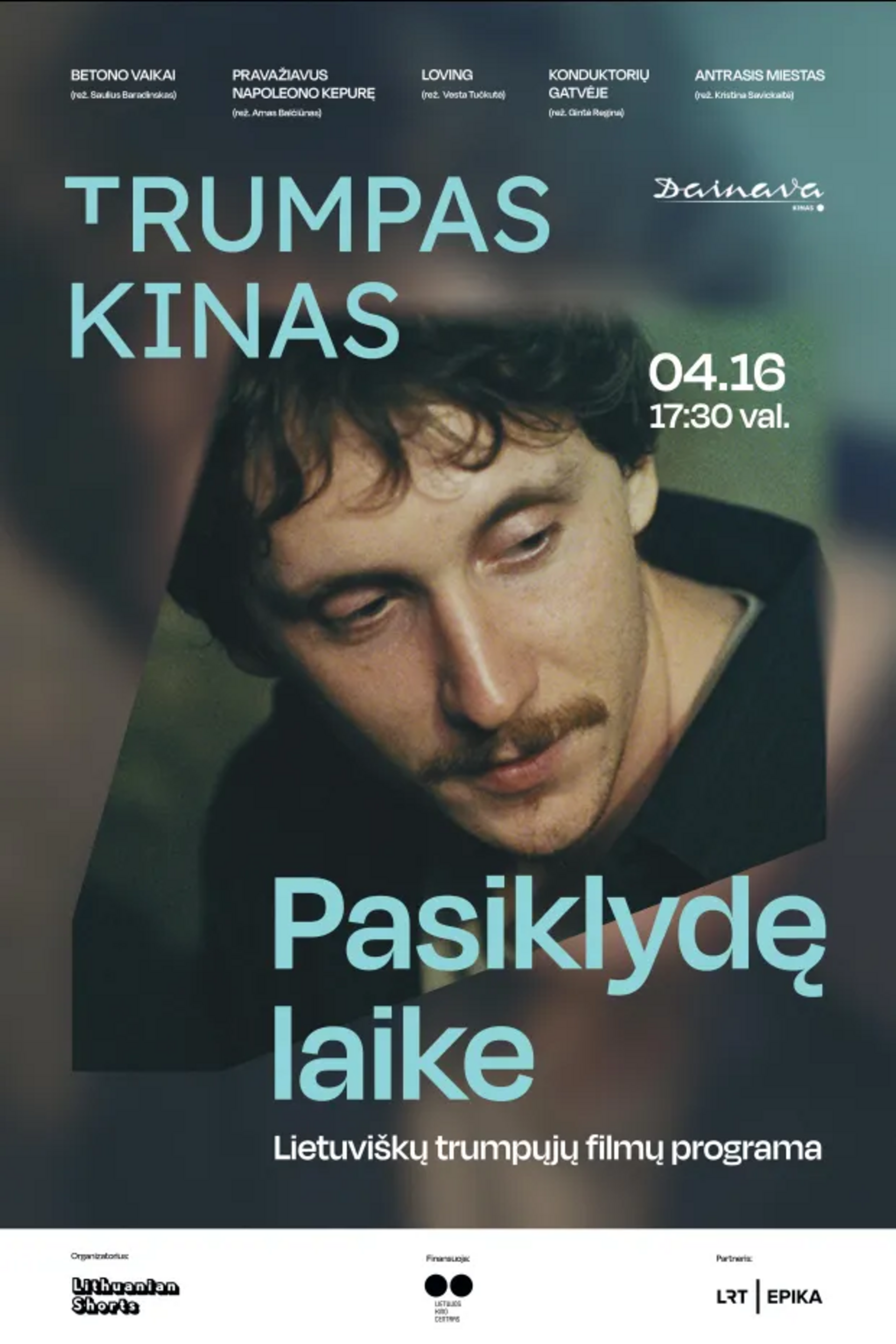 „Trumpas kinas. Pasiklydę laike“ – naujausių lietuviškų trumpametražių filmų programa, kurioje – jautrus, drąsus, poetiškas žvilgsnis į žmogų bei aplinką. Kino teatre "Dainava" programa bus rodoma vienintelį kartą, balandžio 16 d., 17:30 val. Penkiuose filmuose kalbama apie tėvų ir vaikų santykius, vaikystę daugiabučių kiemuose, apie trapų ir trumpalaikį artumą, apie sugrįžimą į besikeičiantį miestą ir laisvės paieškas jo paraštėse. Filmų herojai klaidžioja tiek miesto erdvėse, tiek savo vidiniuose pasauliuose, bandydami suprasti, kur slypi jų namai ir jų tapatybė.