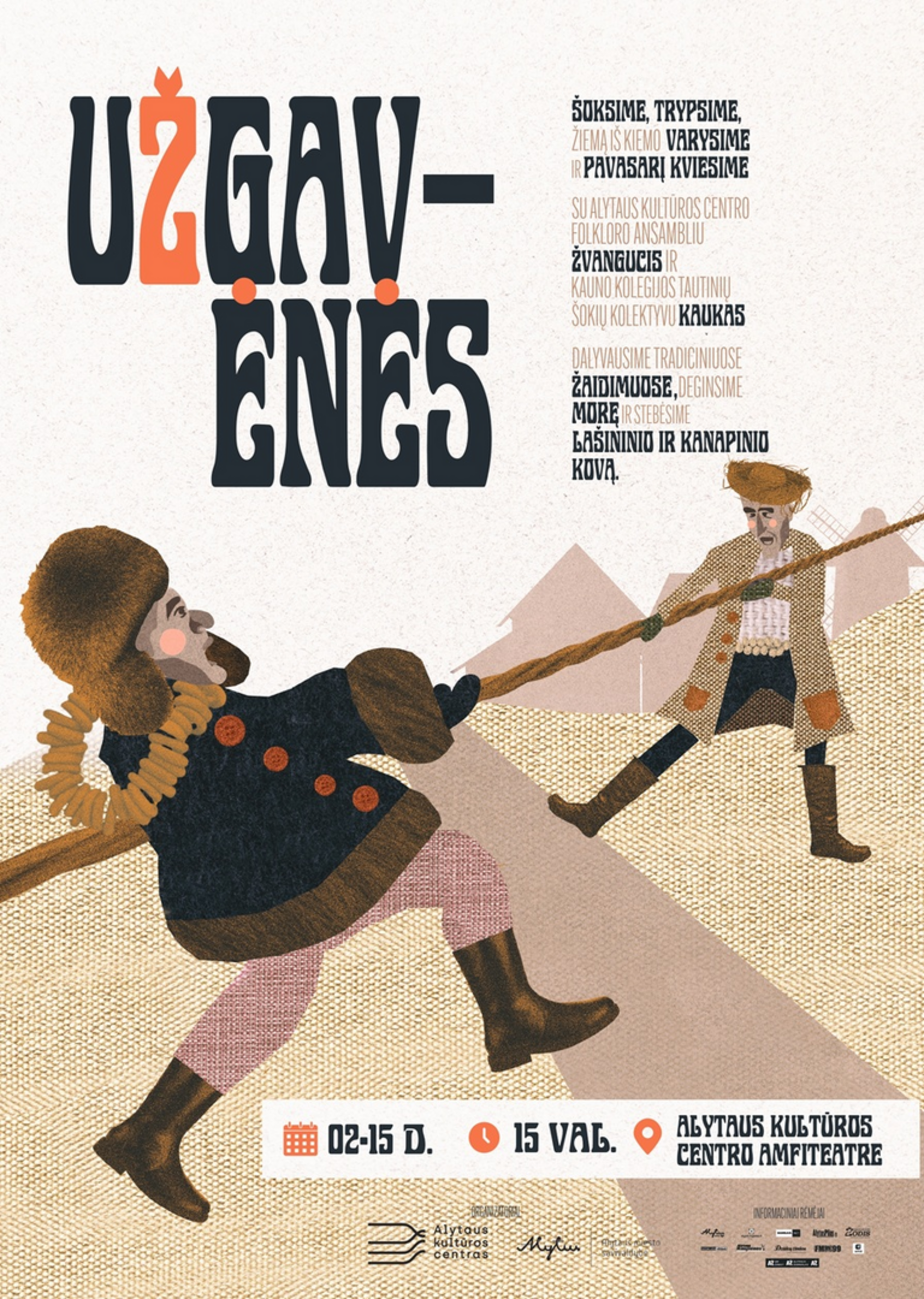 Vasario 15 d. 15 val. susiburkime Alytaus kultūros centro amfiteatre pasilinksminti, pašėlti, sočiai užsigavėti ir žiemą iš kiemo išvyti.