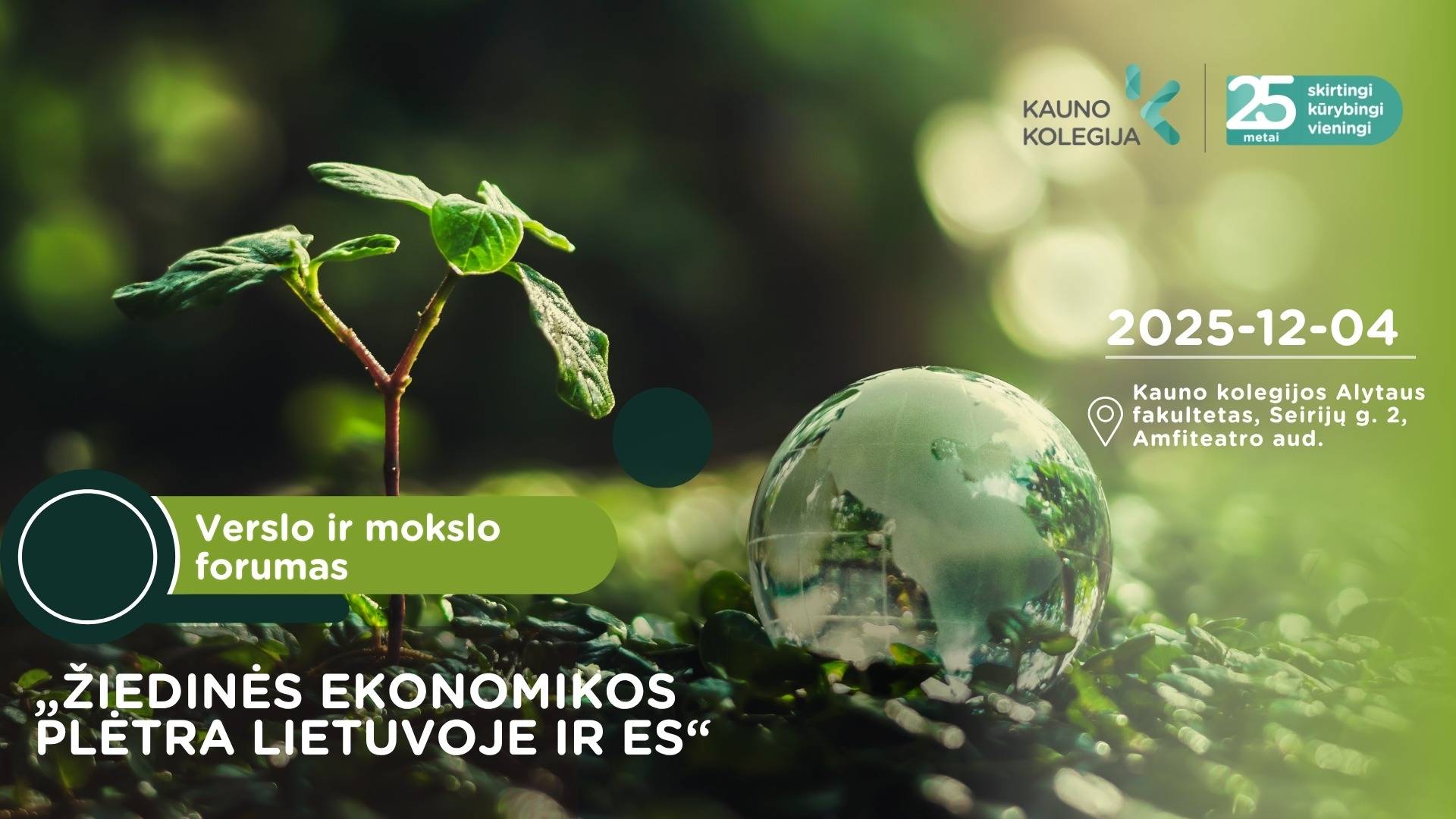Gruodžio 4-ąją Kauno kolegijos Alytaus fakultetas taps diskusijų epicentru – čia vyks tradicija tapęs verslo ir mokslo forumas „Žiedinės ekonomikos plėtra Lietuvoje ir ES“. Šių metų tema: „Žiedinės ekonomikos sprendimai maisto sektoriuje: nuo atliekų iki vertės – inovacijos, skaitmenizacija ir partnerystės“.