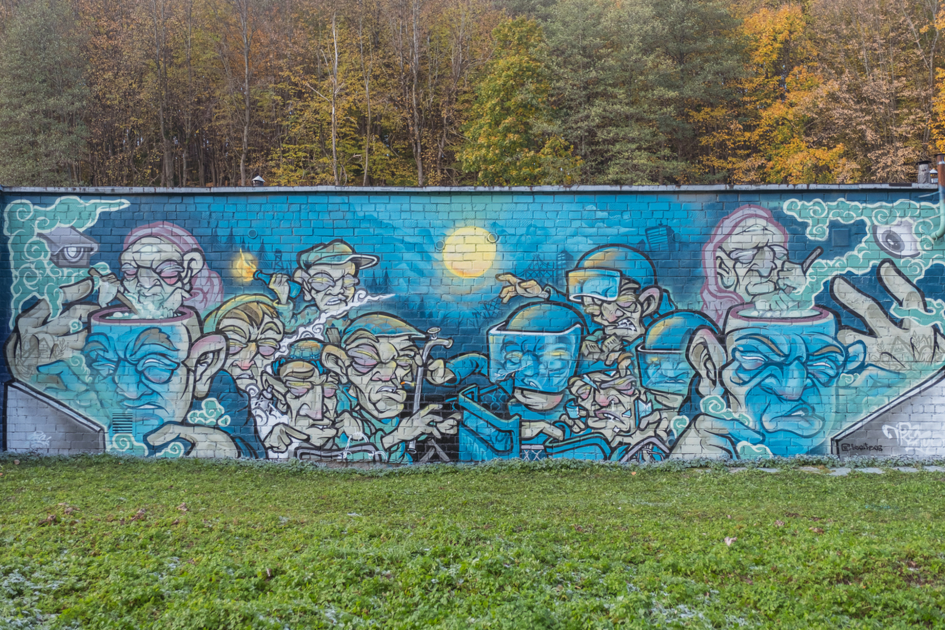 Уличные художники из Вильнюса, Каунаса, Клайпеды, Алитуса и Купишкиса разрисовали ничем не примечательную кирпичную стену на улице Кауно. красочный и привлекательный дизайн.